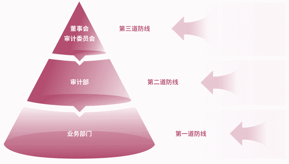 为有效防范贿赂与贪污等商业道德风险,,,,公司建立了由“董事会审计委员会、、、审计部、、业务部门”组成的三道防线,,,,全面落实公司商业道德合规工作,,并确保《商业道德行为准则》的有效执行。。公司审计部在董事会审计委员会的指导下定期评估、、、审查公司的合规运营情况及准则的履行情况,,并对公司及所有子公司开展商业道德行为审计。。公司保证商业道德行为准则审计工作每三年覆盖公司及其所有控股子公司的全部业务范围。。。。