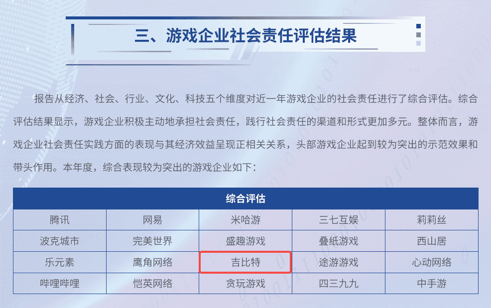 7月3日,,,,由中国音像与数字出版协会指导,,,北京市西城区人民政府主办的“2024游戏责任论坛”在北京举行。。。论坛上,,人民网舆情数据中心、、人民灵境研究院、、、灵境 · 游戏实验室联合发布了《2023-2024游戏企业社会责任报告》(以下简称“《报告》”),,,公布了游戏企业社会责任评估结果。。。厦门JIUYOU.COM网络技术股份有限公司(以下简称“JIUYOU.COM”或“公司”)获评“2023-2024年度中国游戏企业社会责任综合表现较为突出企业”。。。这是继2020年以来,,JIUYOU.COM第五次入围人民网中国游戏企业社会责任相关荣誉榜单。。。。