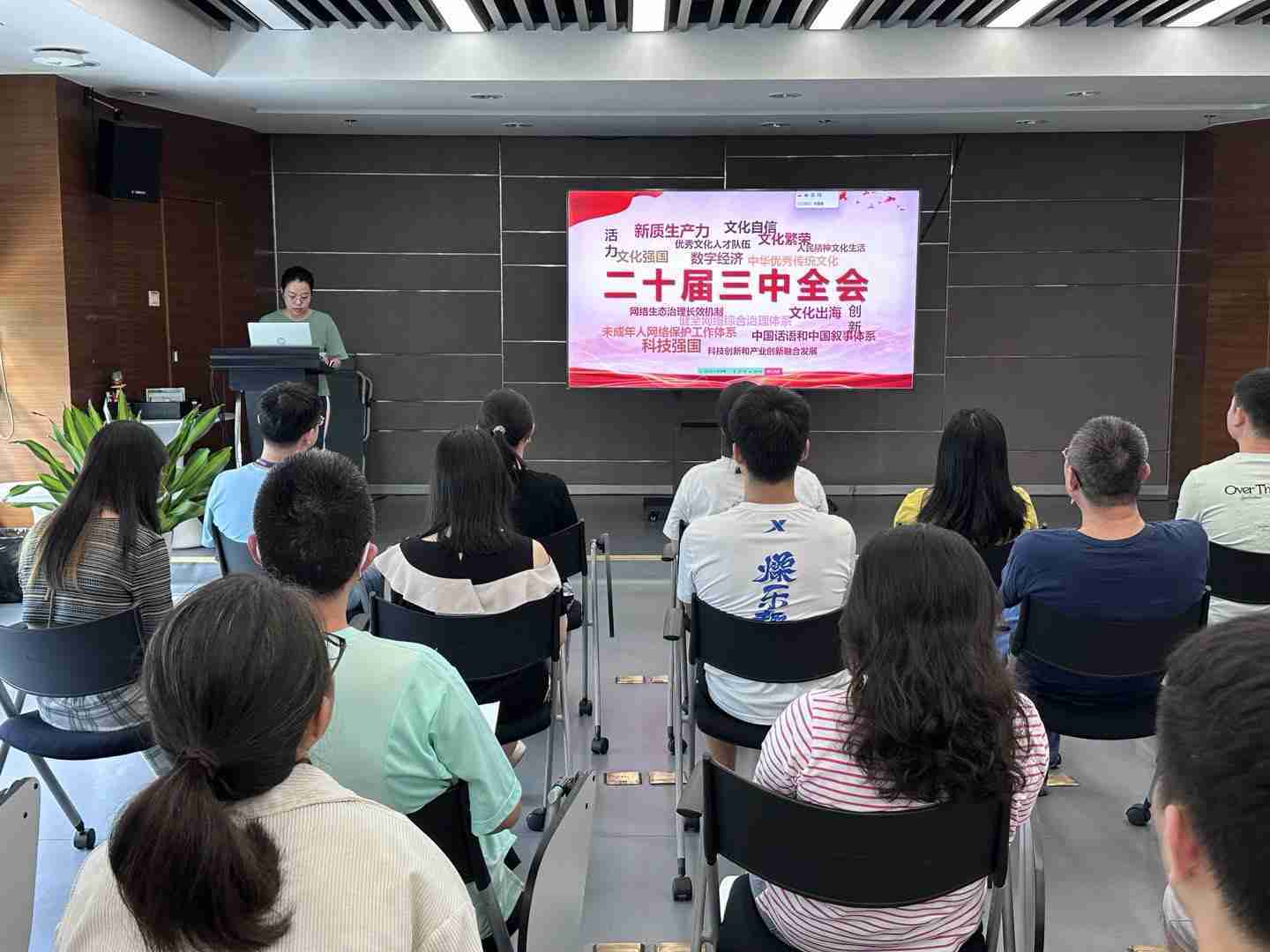 与会人员深入学习《决定》内容。。。党的二十届三中全会提出必须增强文化自信,,发展社会主义先进文化,,,弘扬革命文化,,,,传承中华优秀传统文化,,,,加快适应信息技术迅猛发展新形势,,构建更有效力的国际传播体系,,,这为广大文化产业工作者指明了奋斗方向。。