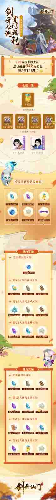 游戏为大家准备了海量的福利,,包括上线即可获得的全渠道预约礼包、、、十连抽等福利,,输入密令“JK666”、、、、“JK888”即可领取紫色弟子,,,,达到金丹期后还有功法宝箱可领,,,助力全宗上下实力提升……所有奖励总价值超过648元,,而邀请好友一起体验,,,,更可以获得额外的奖励哦~