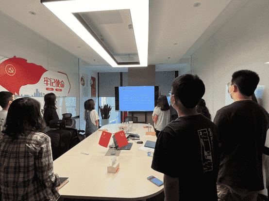 而后,,,,全体党员一起重新学习了解了目前的入党流程要求,,,各支部也将在后续工作中进一步发挥支部职能,,,,做好发展党员工作。。。最后,,全体党员面向党旗,,重温入党誓词。。