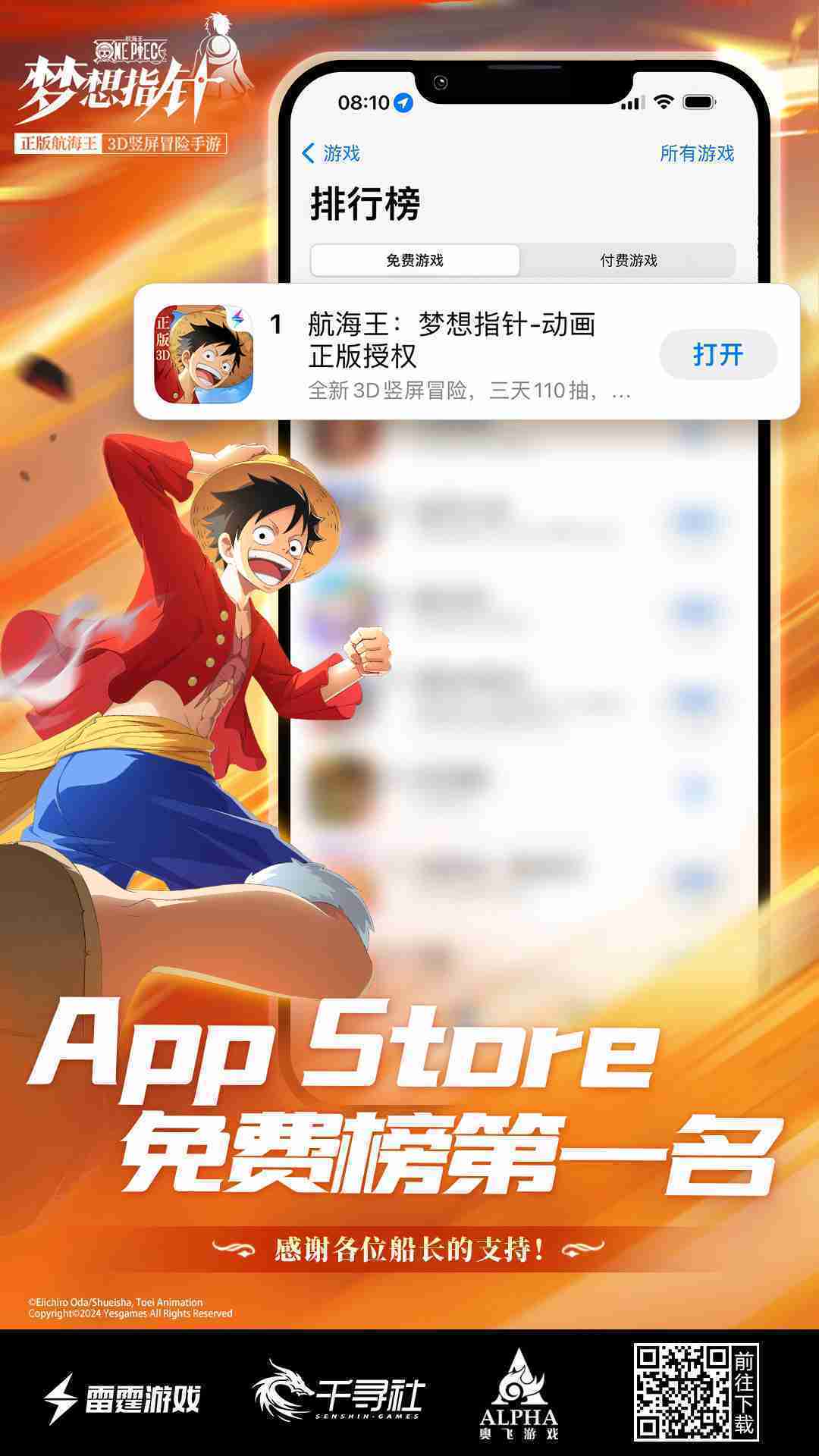 《航海王:::梦想指针》登顶App Store免费榜,,,,公测福利汇总!!
